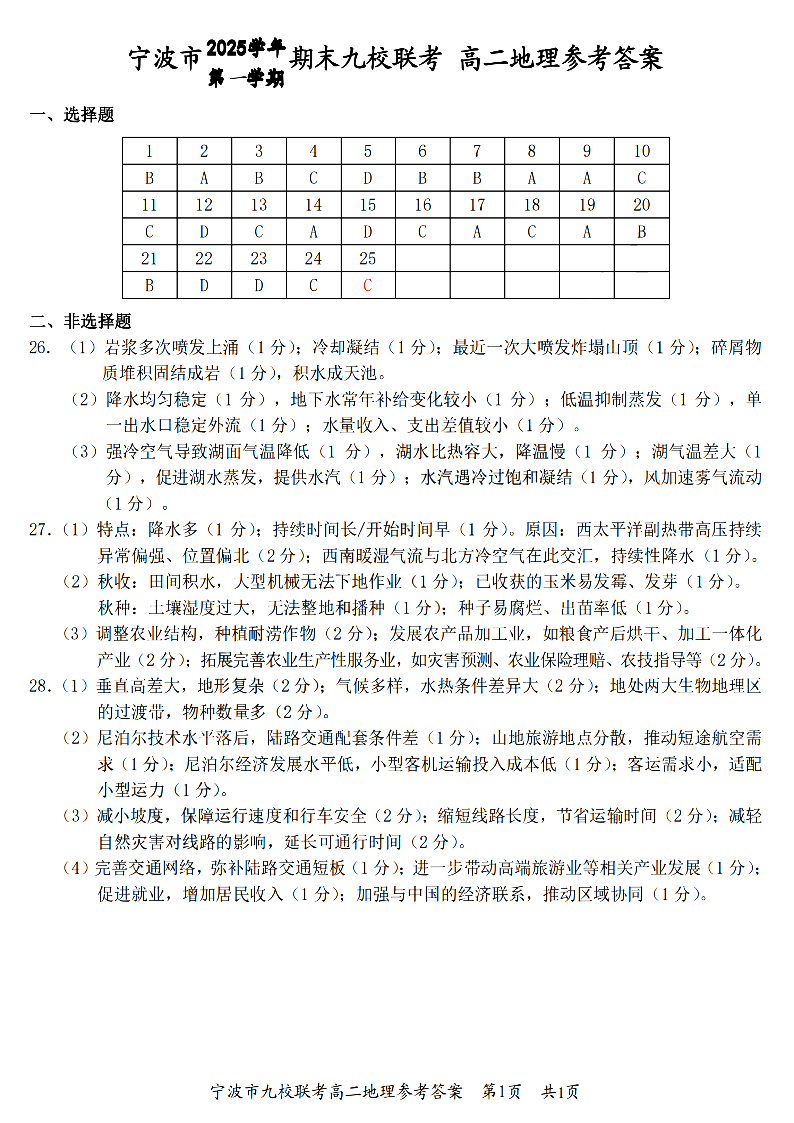 浙江省宁波九校联盟2025学年高二第一学期期末联考 地理答案.pdf