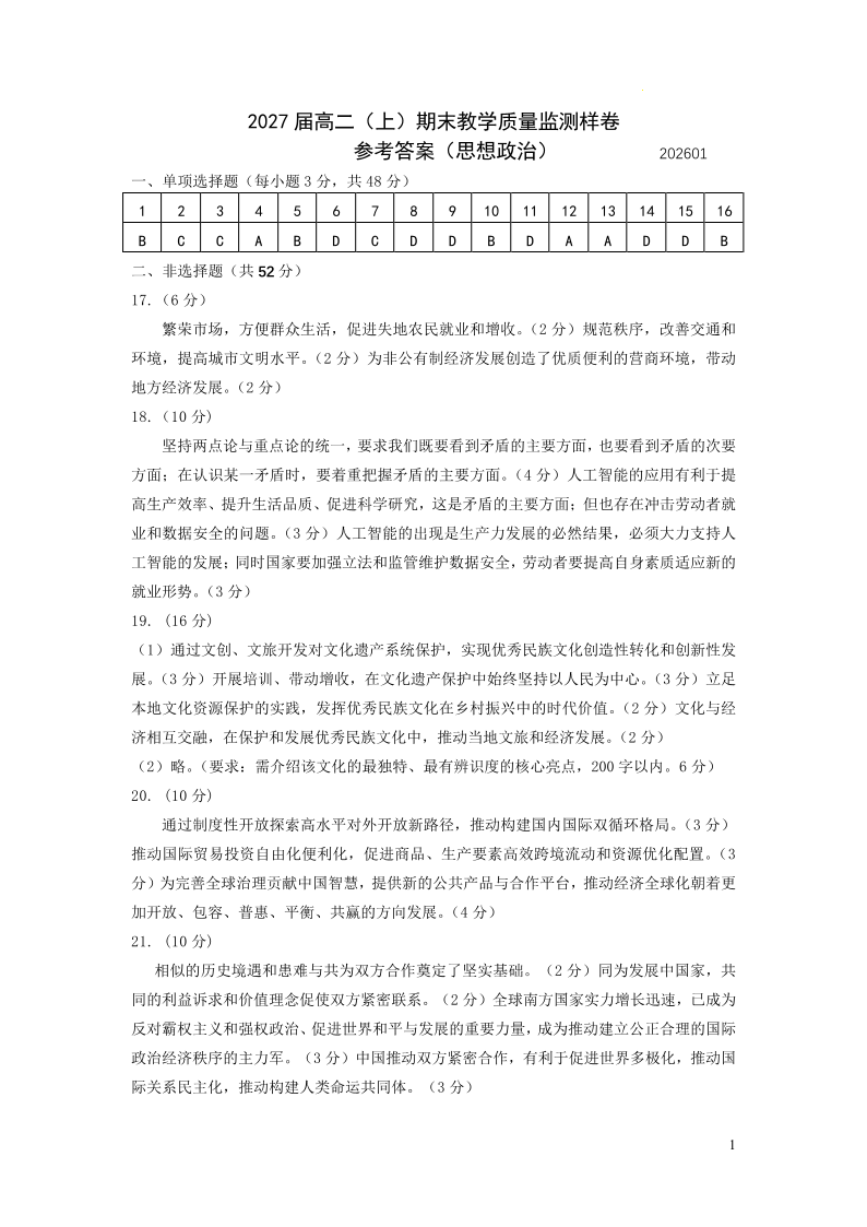 攀枝花市2025-2026学年度高二(上)教学质量监测样卷 政治答案.pdf
