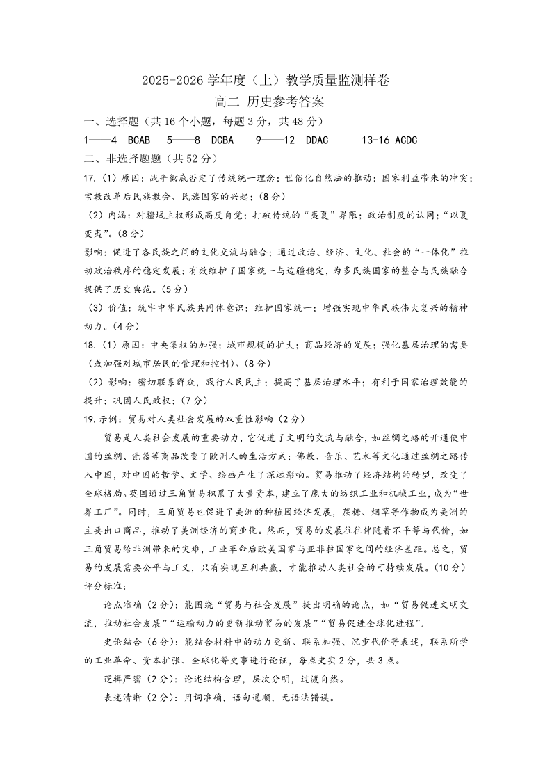 攀枝花市2025-2026学年度高二(上)教学质量监测样卷 历史答案.pdf