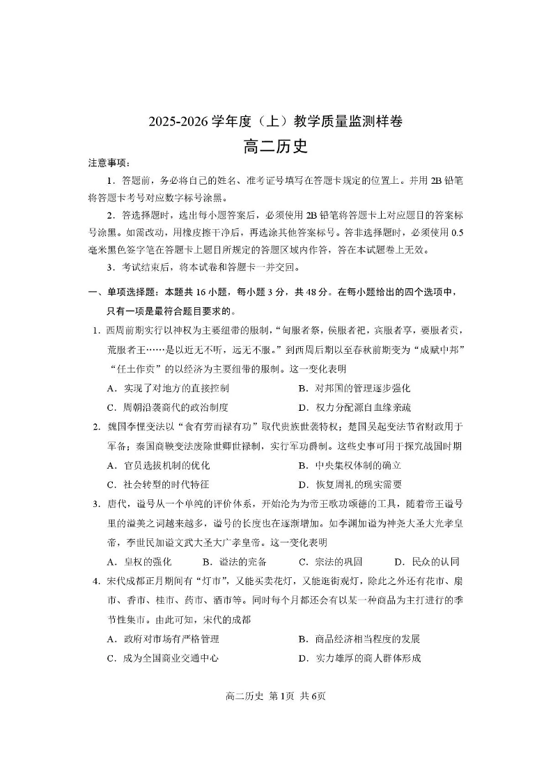 攀枝花市2025-2026学年度高二(上)教学质量监测样卷 历史.pdf