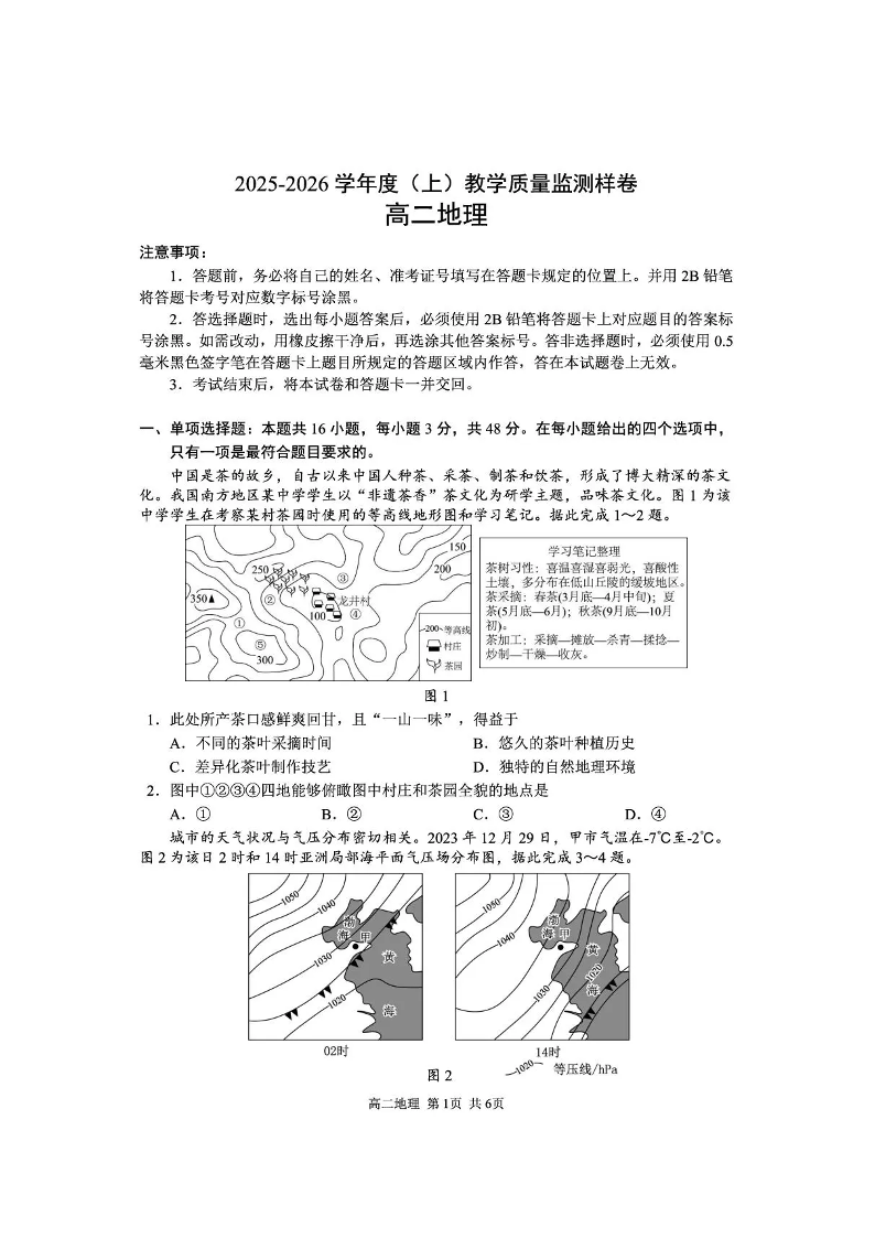 攀枝花市2025-2026学年度高二(上)教学质量监测样卷 地理.pdf