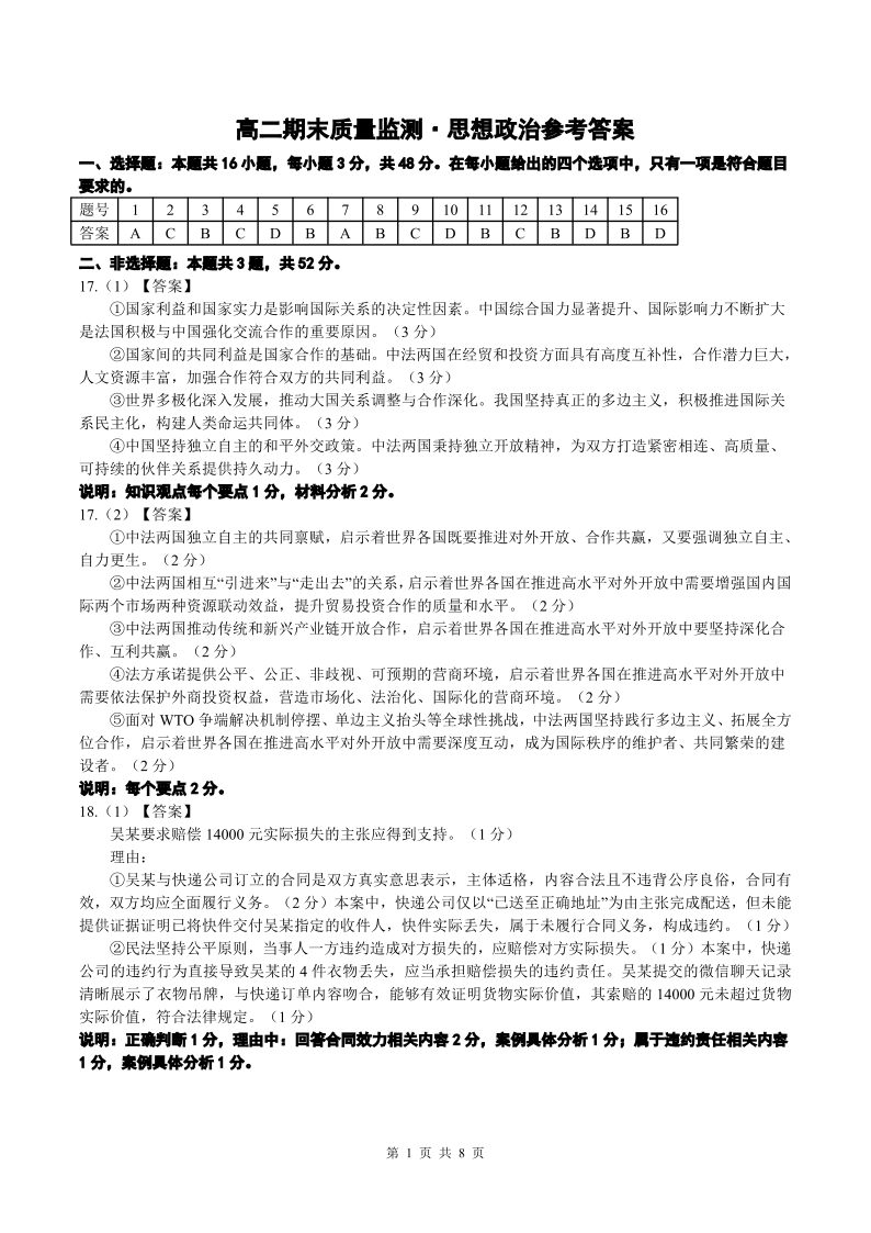 辽宁省点石联考2025-2026学年高二1月期末质量监测 政治答案.pdf