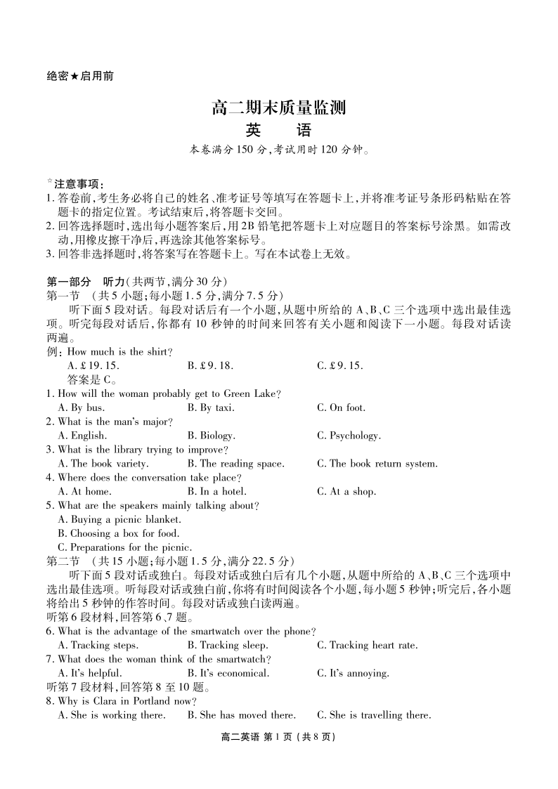 辽宁省点石联考2025-2026学年高二1月期末质量监测 英语.pdf