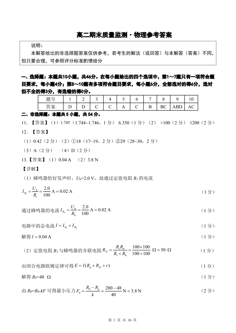 辽宁省点石联考2025-2026学年高二1月期末质量监测 物理答案.pdf
