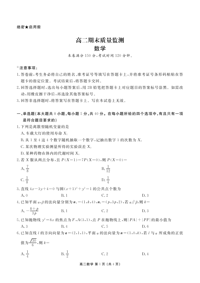 辽宁省点石联考2025-2026学年高二1月期末质量监测 数学.pdf