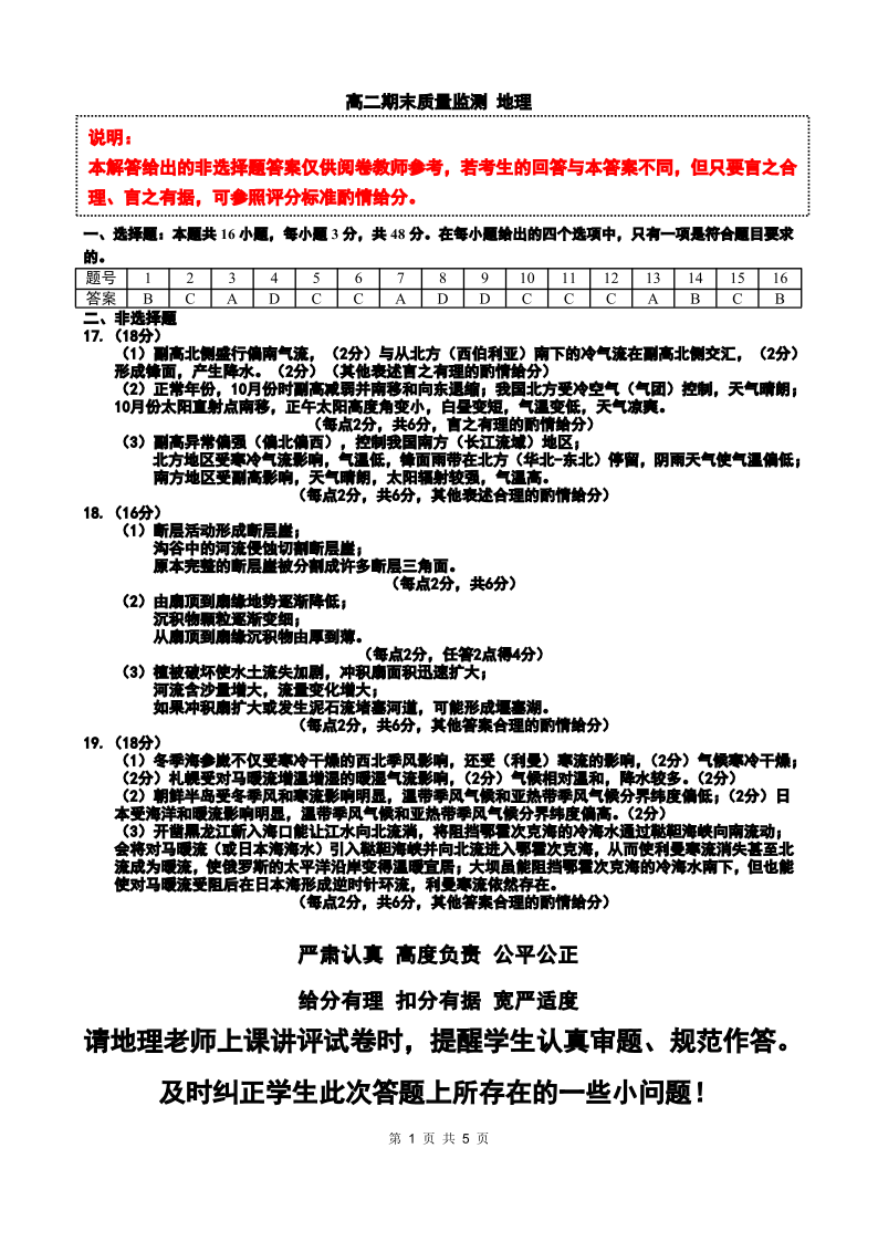 辽宁省点石联考2025-2026学年高二1月期末质量监测 地理答案.pdf