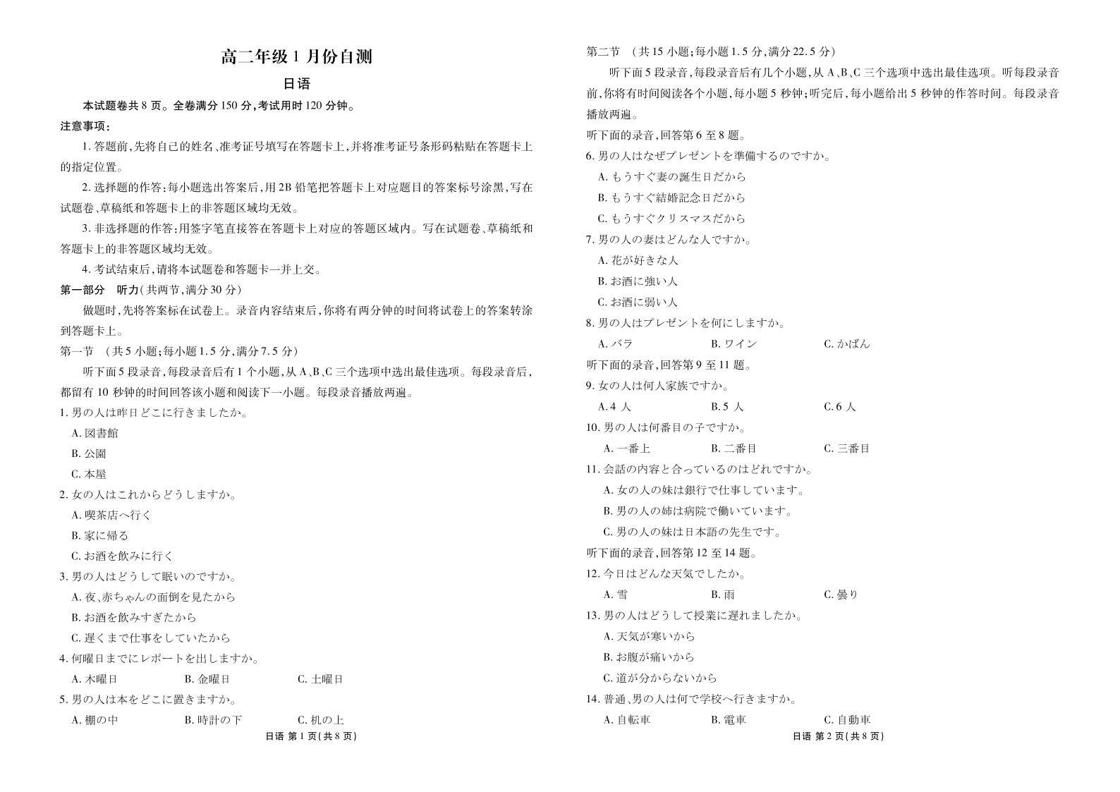 高二年级1月份自测日语正文.pdf