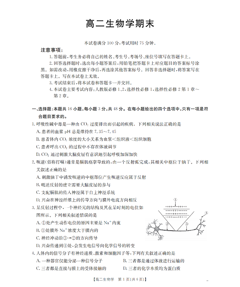 甘肃省定西地区2025-2026学年(上)高二期末考试 生物.pdf