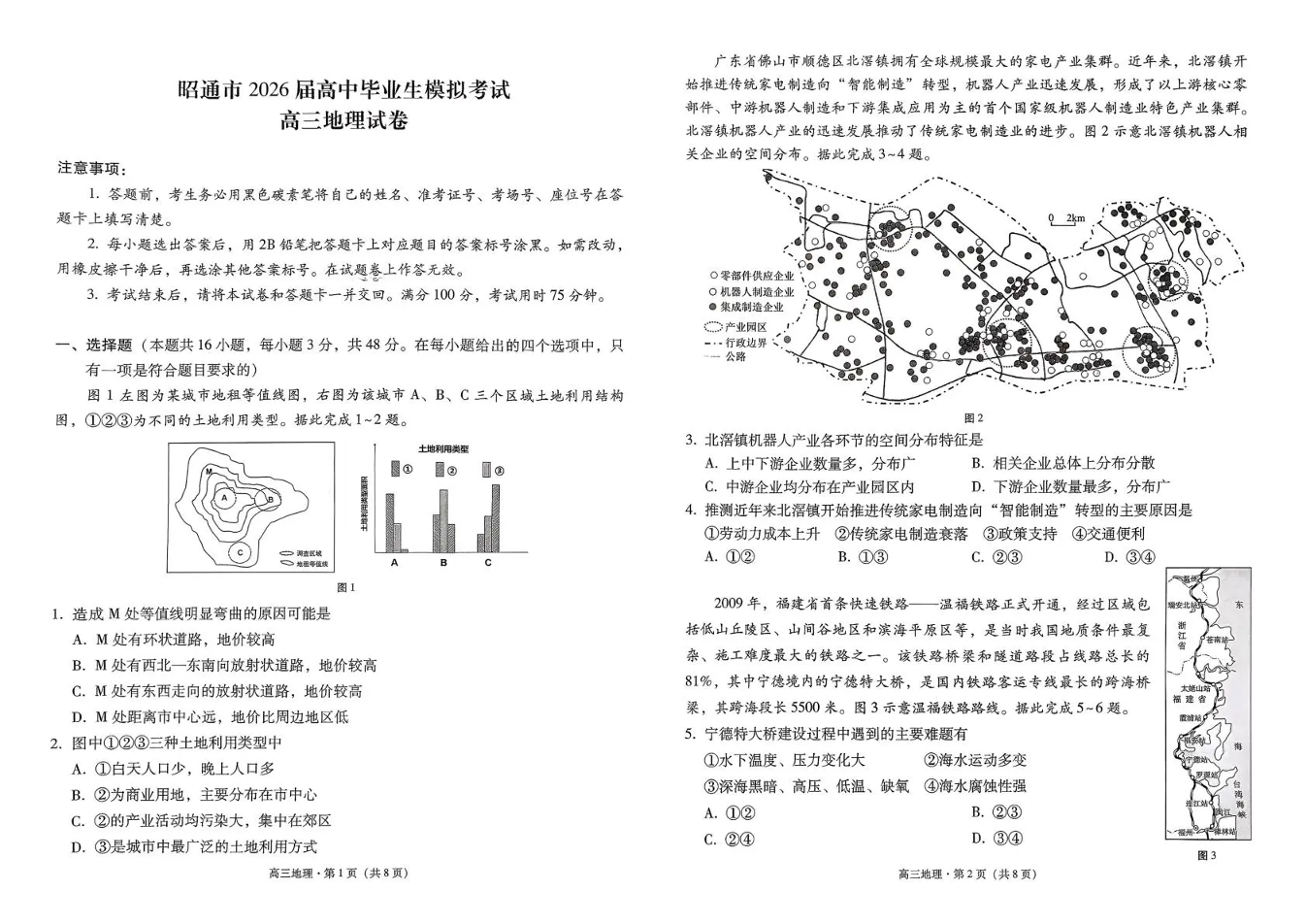 云南省昭通市2026届高中毕业生模拟考试 地理.pdf