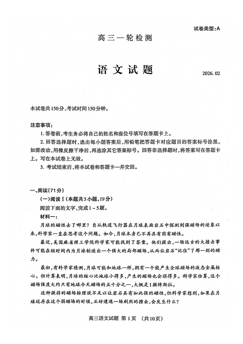 山东省泰安市2026届高三年级一轮检测 语文.pdf