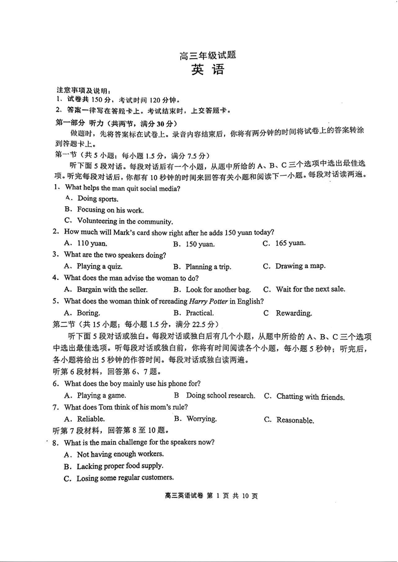 江苏省无锡市2025年秋学期高三期终教学质量调研测试 英语.pdf