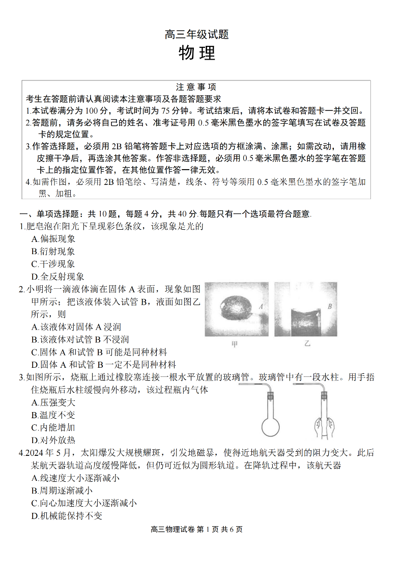 江苏省无锡市2025年秋学期高三期终教学质量调研测试 物理.pdf