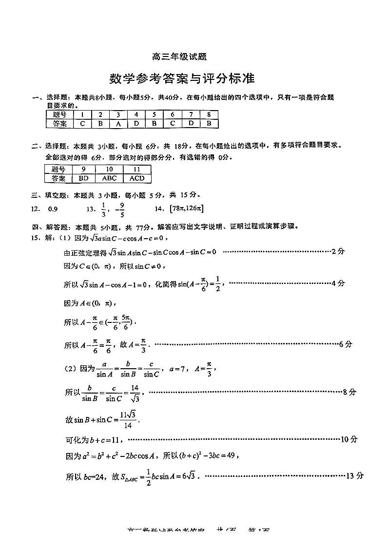 江苏省无锡市2025年秋学期高三期终教学质量调研测试 数学答案.pdf