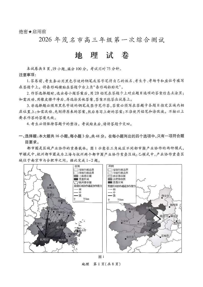 2026年茂名市高三年级第一次综合测试 地理.pdf