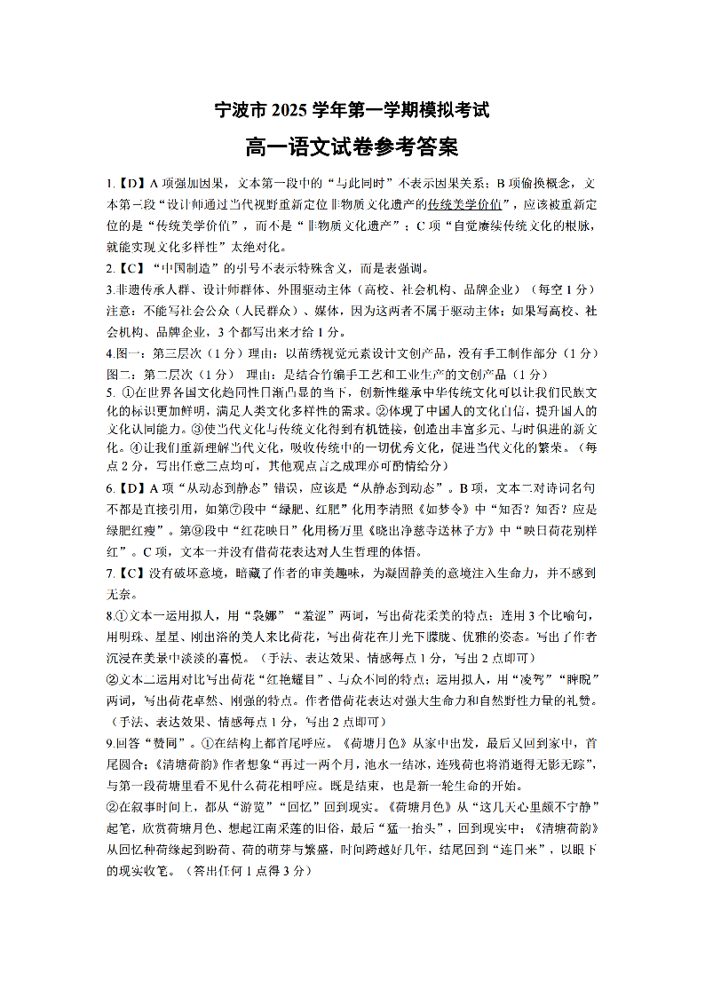 浙江省宁波市2025学年高一第一学期期末测试 语文答案.pdf