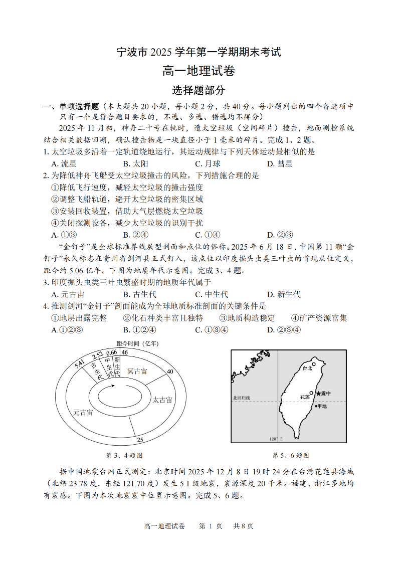 浙江省宁波市2025学年高一第一学期期末测试 地理.pdf