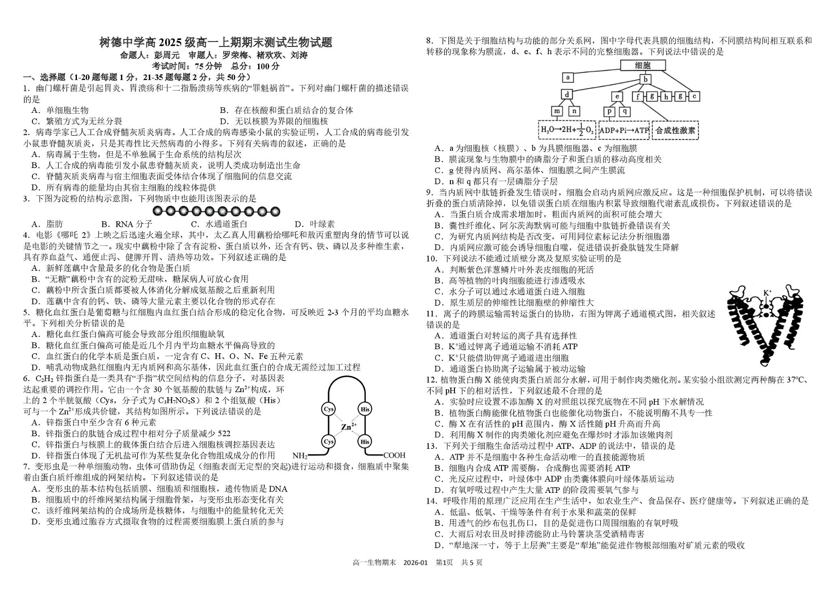 四川省成都市树德中学高2025级高一年级上期期末测试 生物试题(含答案).pdf