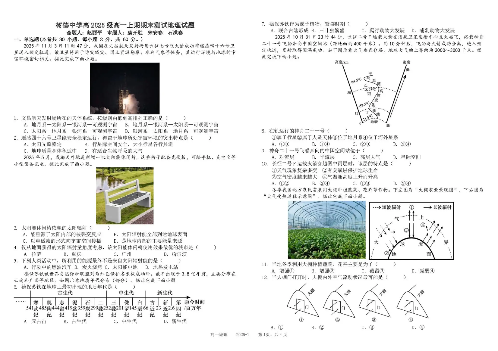 四川省成都市树德中学高2025级高一年级上期期末测试 地理试题(含答案).pdf