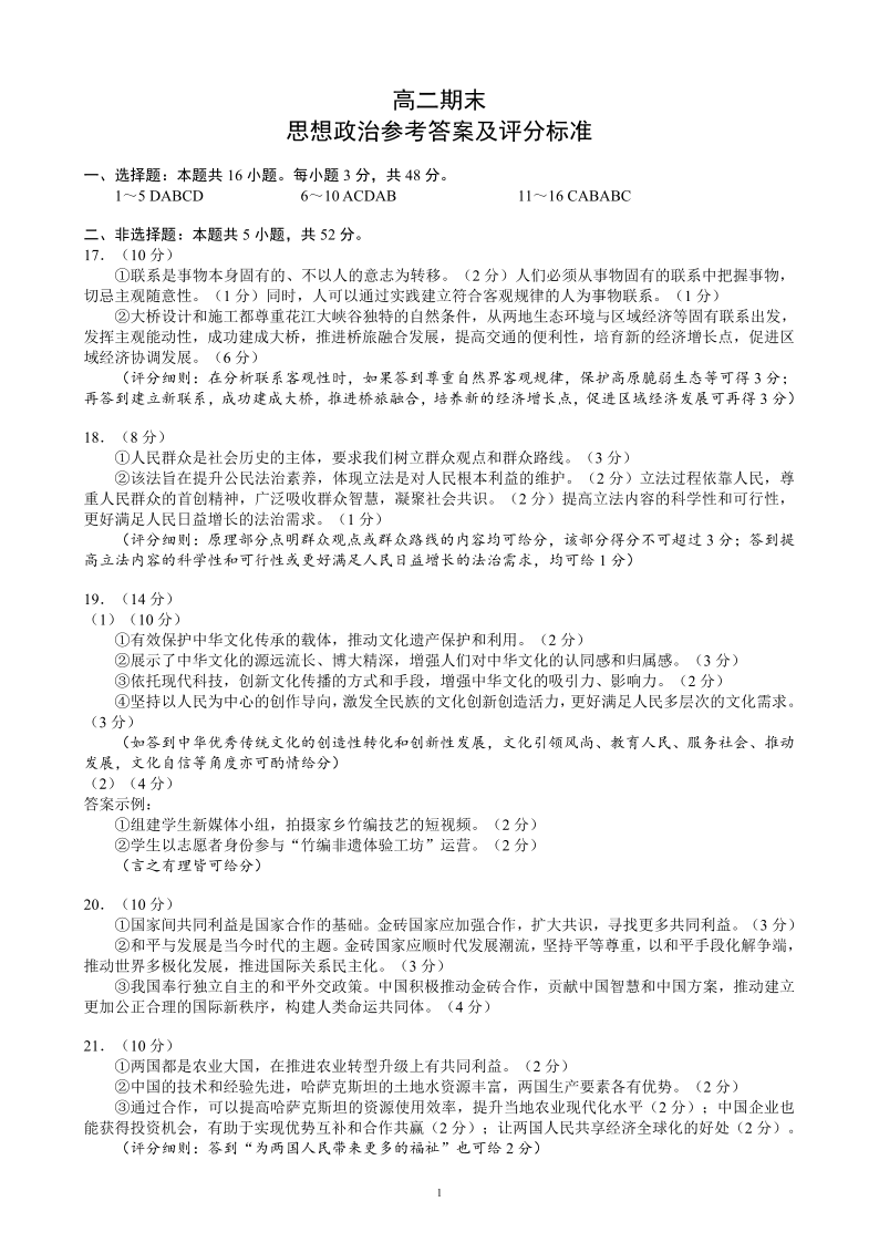 四川省蓉城名校联盟2027届高二年级上学期期末考试 政治答案.pdf