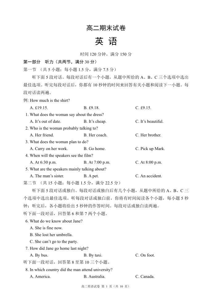 四川省蓉城名校联盟2027届高二年级上学期期末考试 英语.pdf