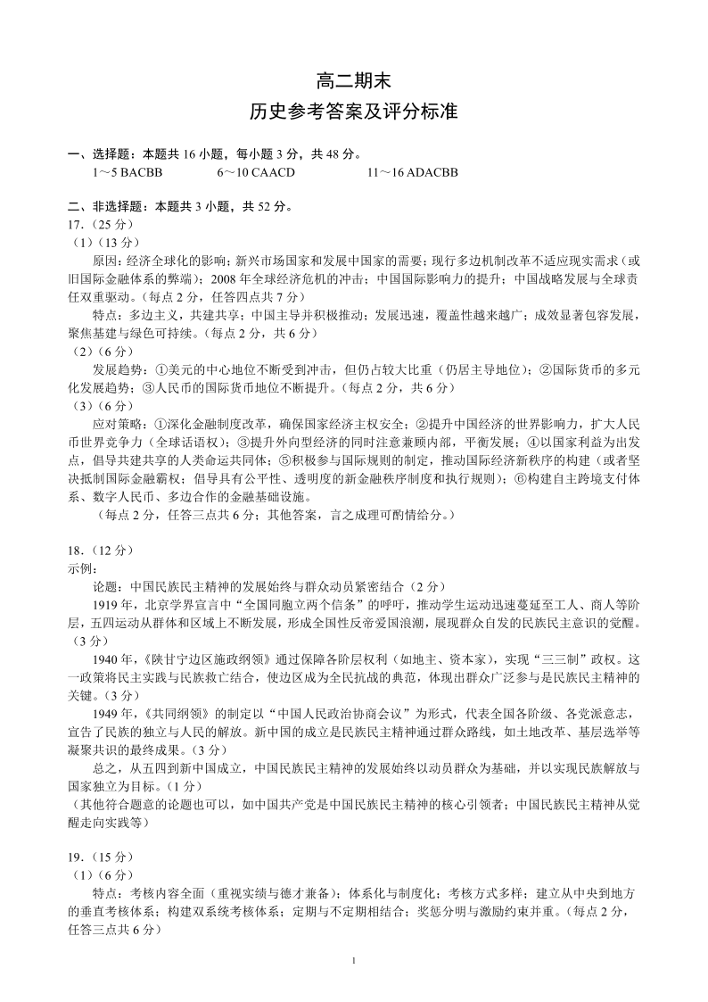 四川省蓉城名校联盟2027届高二年级上学期期末考试 历史答案.pdf