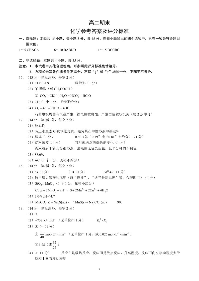四川省蓉城名校联盟2027届高二年级上学期期末考试 化学答案.pdf