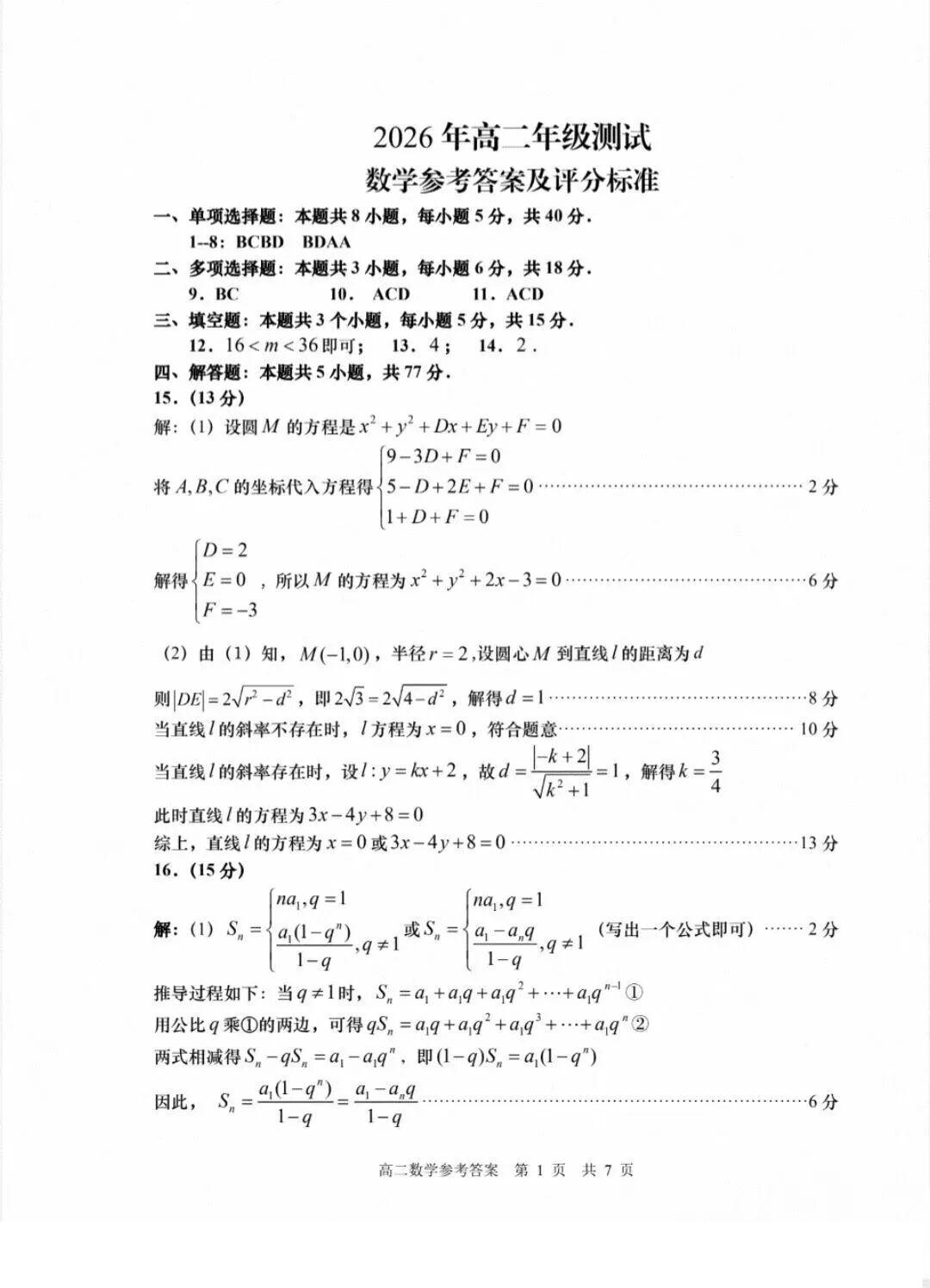 山东省青岛市2026年高二年级上学期2月期末测试 数学答案.pdf