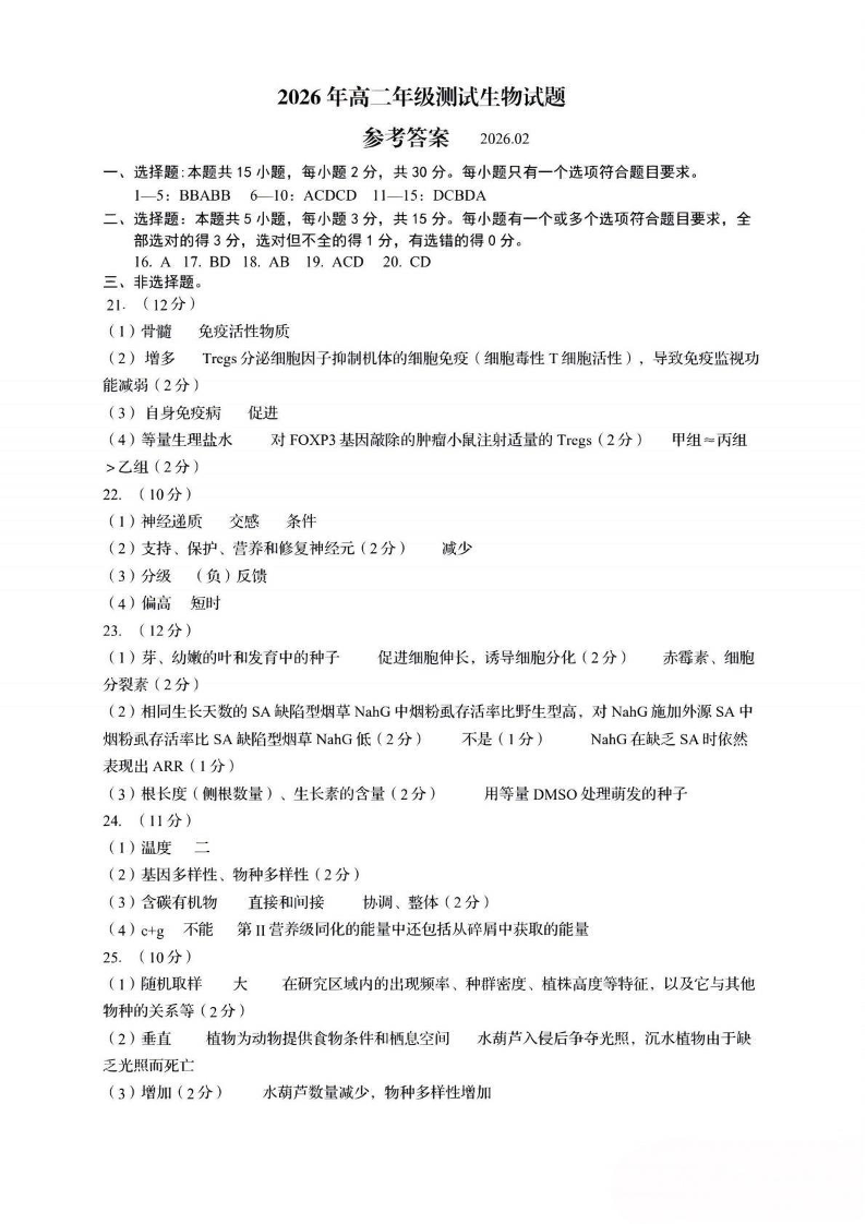 山东省青岛市2026年高二年级上学期2月期末测试 生物答案.pdf