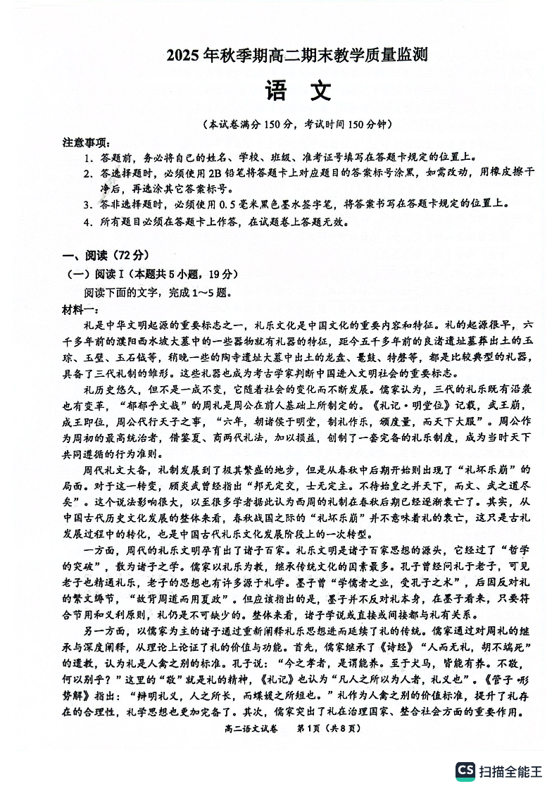 玉林市2025年秋季高二年级期末教学质量监测 语文.pdf