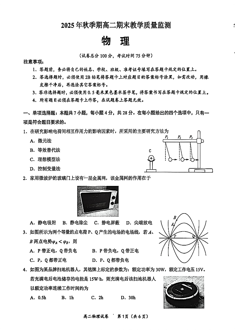 玉林市2025年秋季高二年级期末教学质量监测 物理.pdf