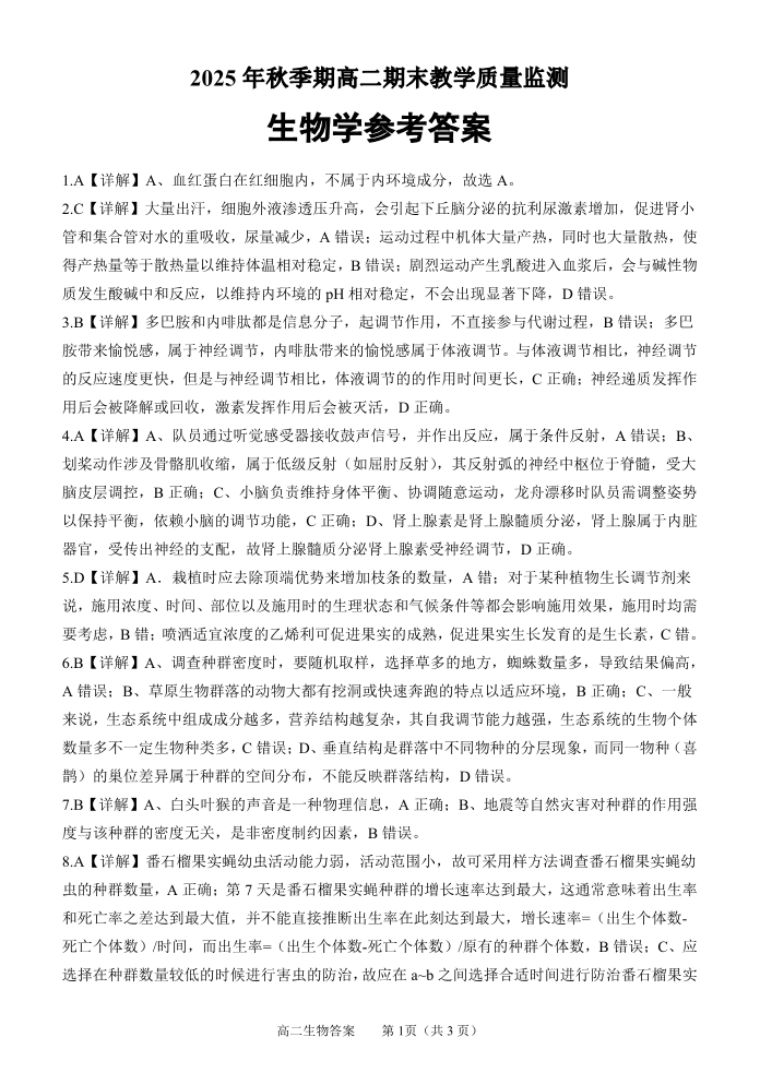 玉林市2025年秋季高二年级期末教学质量监测 生物答案.pdf