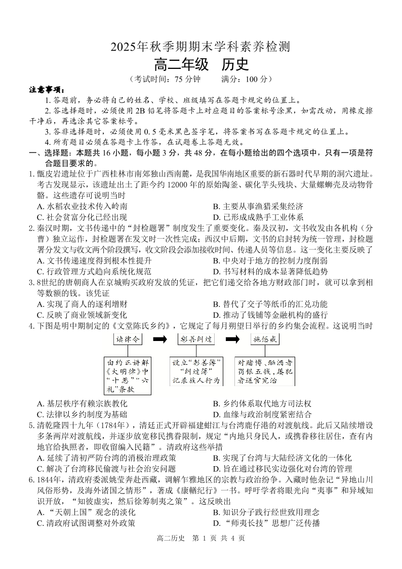 贵港市202年秋季学期高二年级期末学科素养检测 历史.pdf