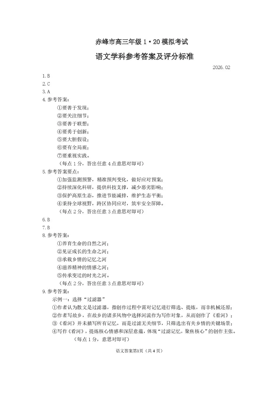 赤峰市高三年级1·20模拟考试 语文答案.pdf