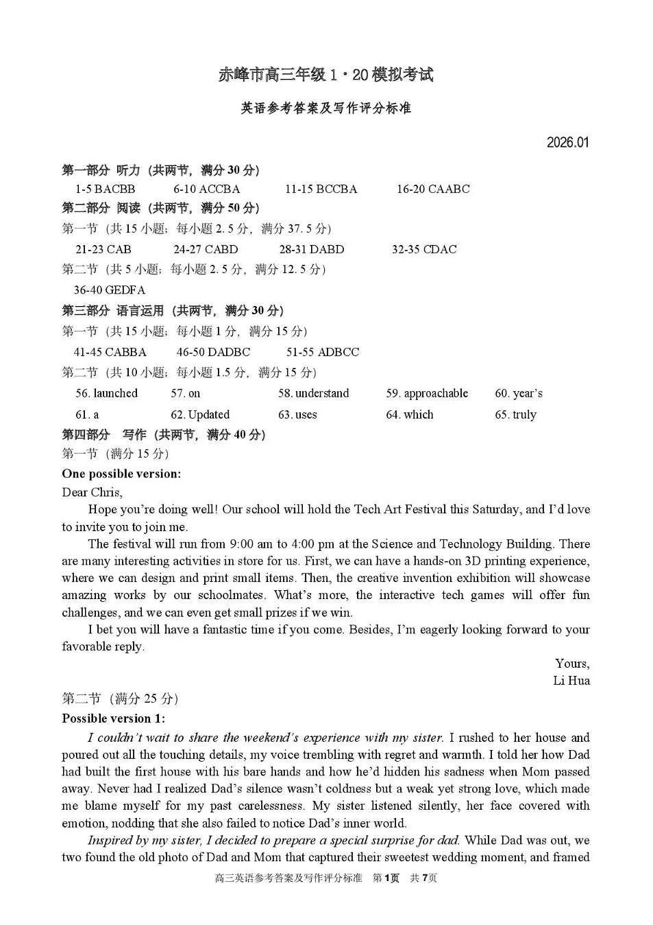 赤峰市高三年级1·20模拟考试 英语答案.pdf