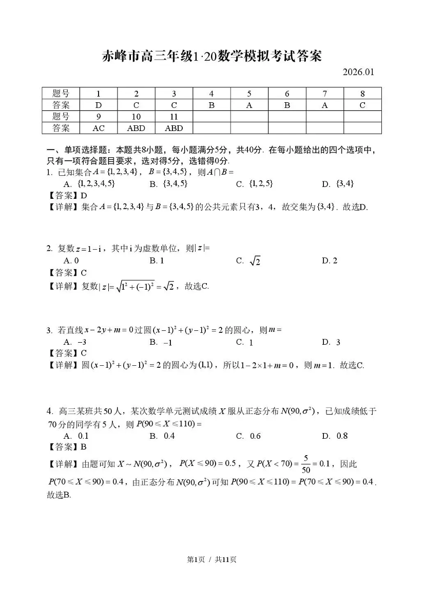 赤峰市高三年级1·20模拟考试 数学答案.pdf