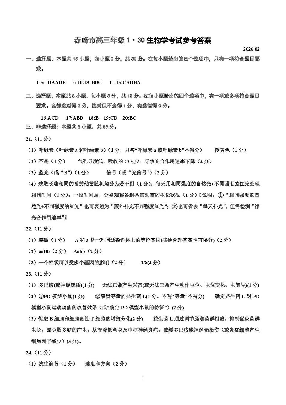 赤峰市高三年级1·20模拟考试 生物答案.pdf