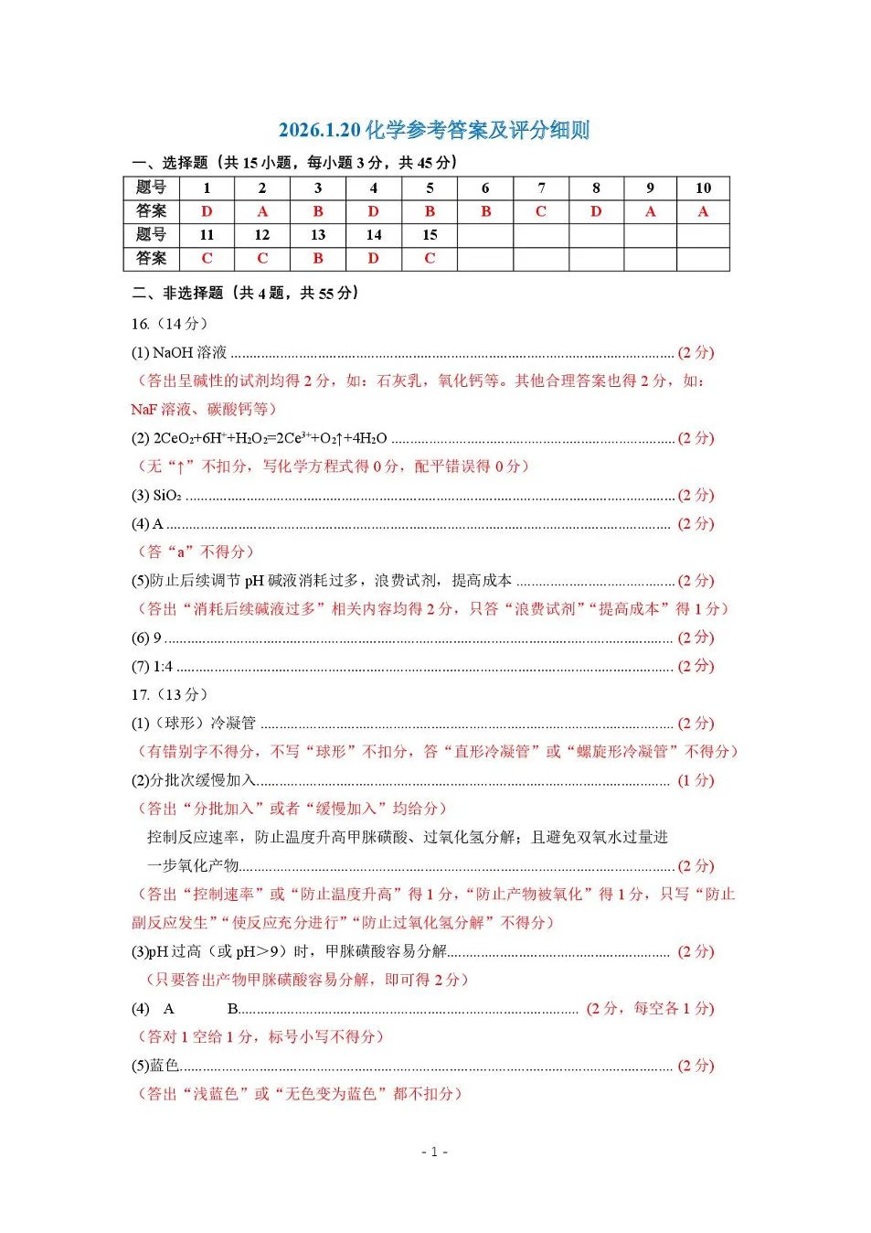 赤峰市高三年级1·20模拟考试 化学答案.pdf