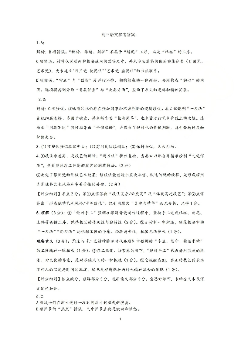 浙江省杭州市2025学年第一学期高三年级期末学业水平测试 语文答案.pdf