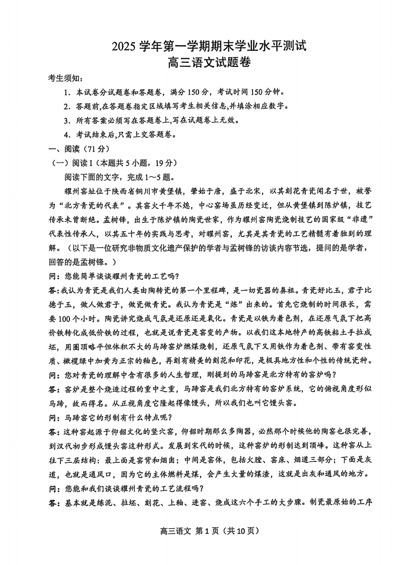 浙江省杭州市2025学年第一学期高三年级期末学业水平测试 语文.pdf