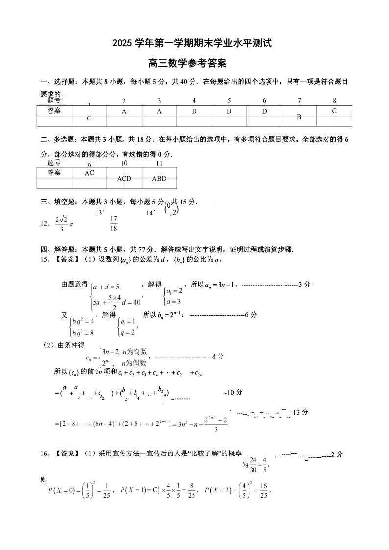 浙江省杭州市2025学年第一学期高三年级期末学业水平测试 数学答案.pdf