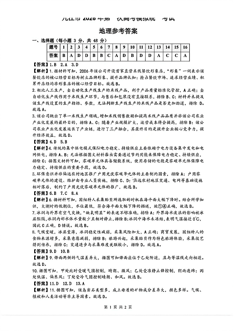 江西省九江市2026年第一次高考模拟统一考试 地理答案.pdf