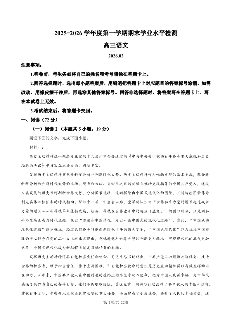 山东省青岛市2026届高三第一学期期末学业水平检测 语文参考答案.pdf