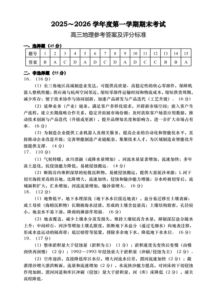 山东省青岛市2026届高三第一学期期末学业水平检测 地理参考答案.pdf