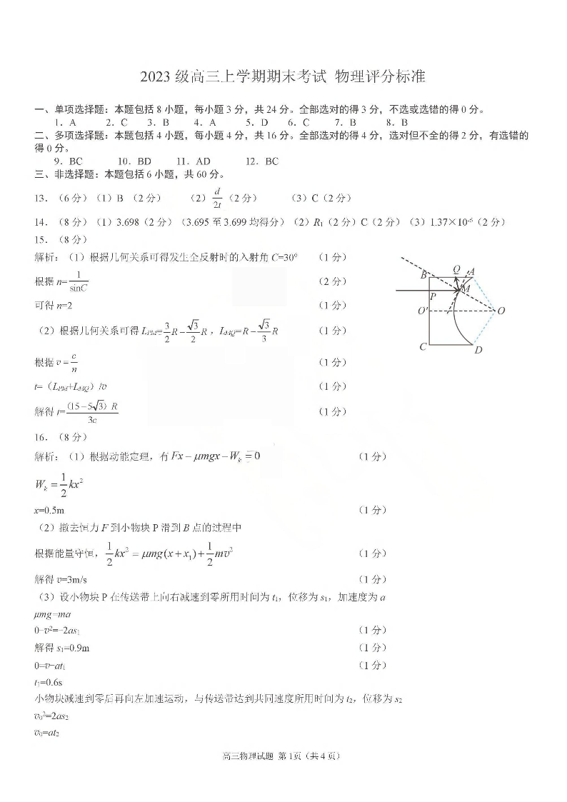 山东省日照市2023级高三年级上学期期末考试 物理答案.pdf