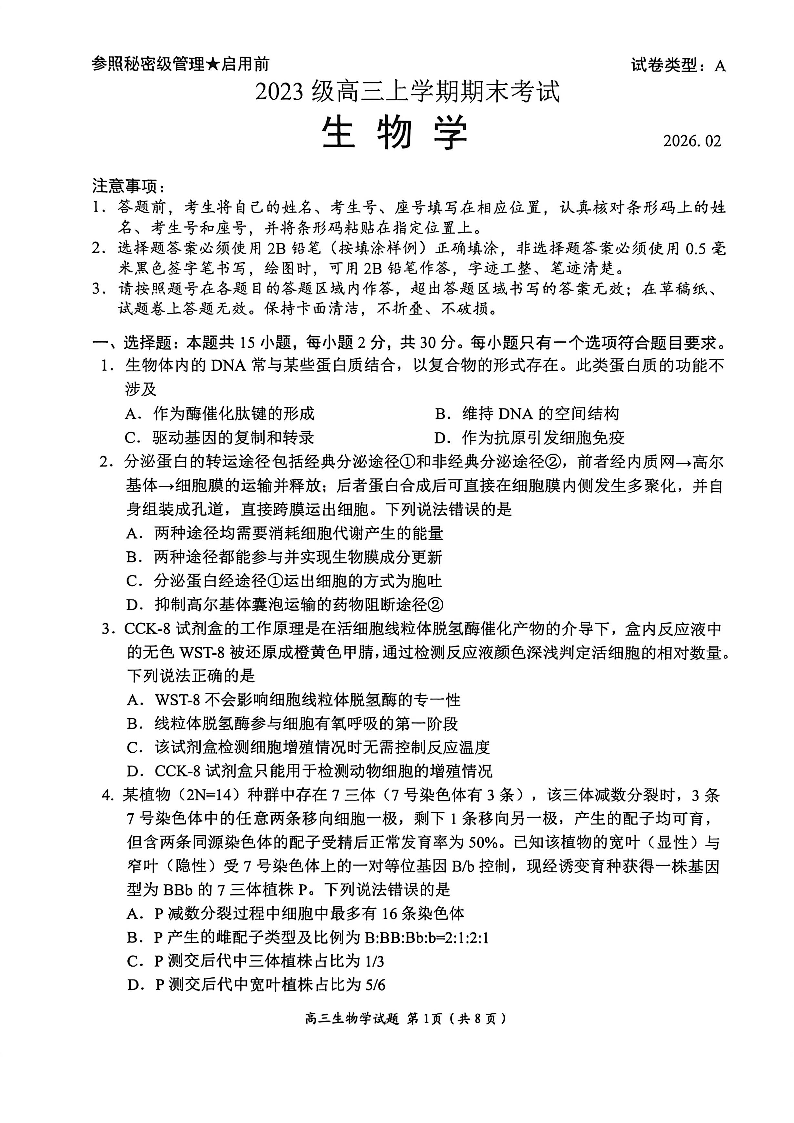 山东省日照市2023级高三年级上学期期末考试 生物.pdf