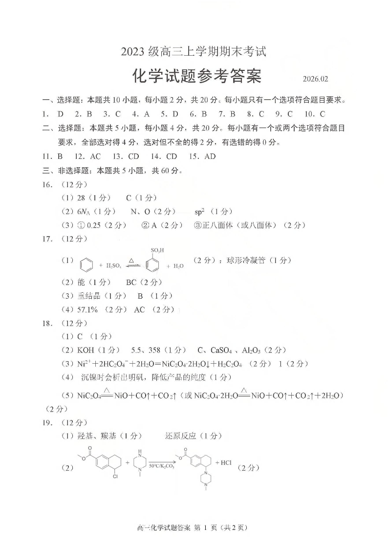 山东省日照市2023级高三年级上学期期末考试 化学答案.pdf