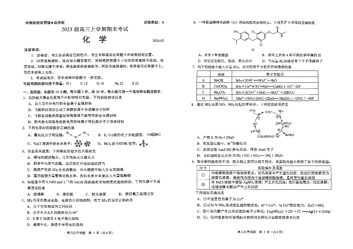 山东省日照市2023级高三年级上学期期末考试 化学.pdf
