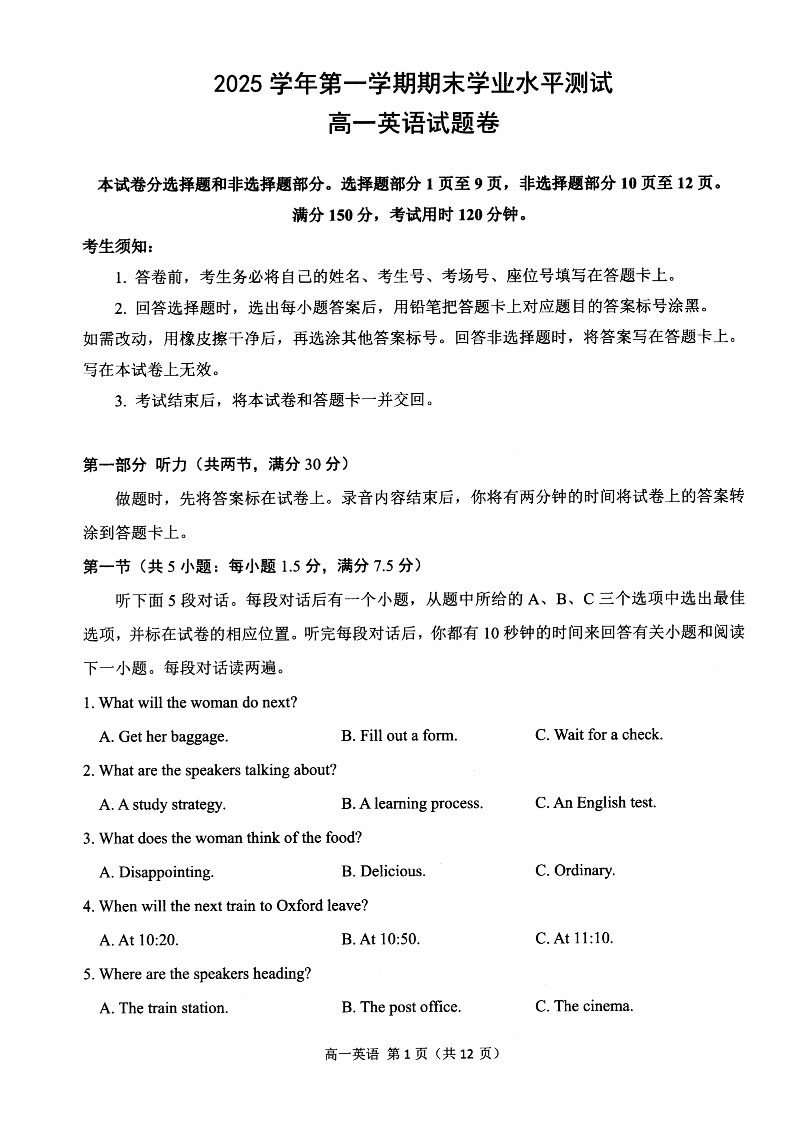 浙江省杭州市2025学年第一学期高一年级期末学业水平测试 英语.pdf