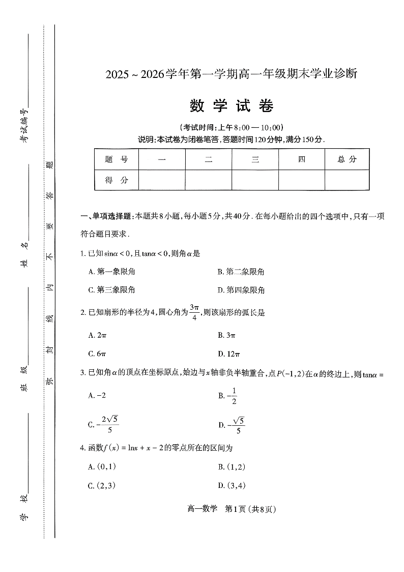 太原市2025-2026学年高一年级第一学期期末学业诊断 数学.pdf