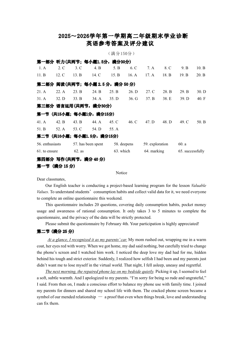 太原市2025-2026学年高二年级第一学期期末学业诊断 英语答案.pdf